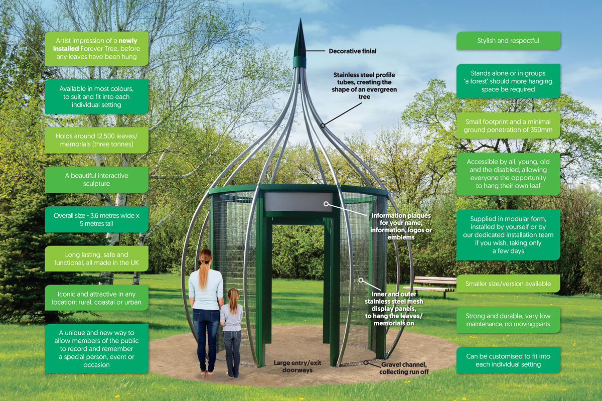 Over the last decade more and more people are wishing to leave a permanent gesture to remember a lost loved one, or commemorate past events or occasions. Forever Trees offer the ability/opportunity to hang and leave a memorial, tribute, message of hope and inspiration or just some special wording.