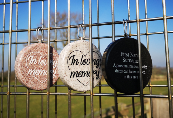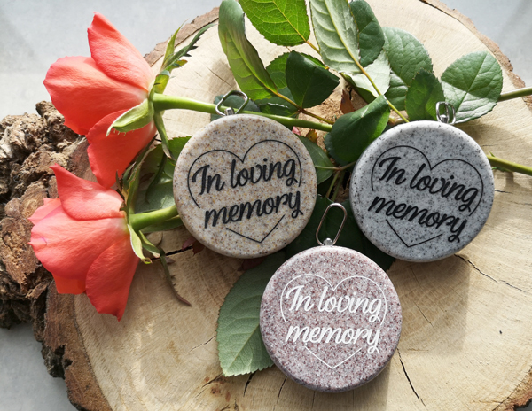 When required, we work with the tree’s owner, to design your very own bespoke leaf, to your design/shape requirements. Though generally, they are made of a granite/stone effect material, shaped into a 55mm dia disc. An image/logo is engraved onto one side and the other side left blank, for engraving of a permanent personal message, by a member of the public. We offer the facility to engrave the personal message too, all produced, engraved and delivered, in one go.